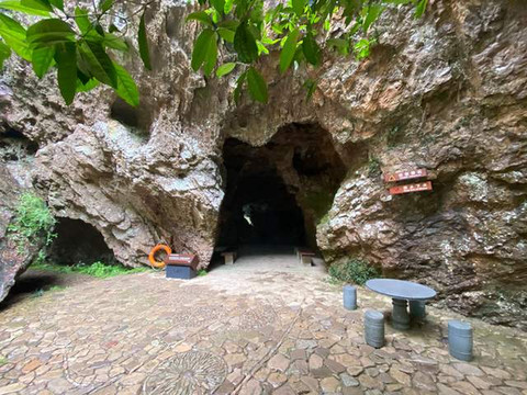与宽阔的洞口相比,洞深反而显得略浅,但确是一处登山歇脚的好去处。洞壁上各色灯光点亮,给原本幽暗的洞穴增添了一丝诡谲,让心中凉意陡增,加上洞穴本身带来的体表凉意,在龙游洞内小憩会倍感凉爽。