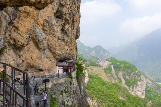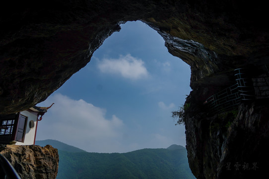 过观音洞便是北斗洞,即原称“簸萁洞”的谐音,是一座依托天然洞穴造就的道观,整个北斗洞清幽雄伟,是一处真正的洞天福地。从北斗洞东望,东西瑶台玲珑多姿,诸座山峰层峦跌宕,绿意婆娑的树草覆盖其上,秀美而奇妙。