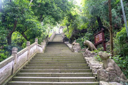 爬过十二生肖雕塑的台阶可以到达灵峰古洞,灵峰古洞是由一些零落的小岩洞贯穿而成,里面供奉佛像。反倒是处在灵峰古洞洞顶的东西瑶台,值得爬上去,由于视野开阔,可俯瞰整个灵峰景区,尤其是可远观对面的合掌峰、北斗洞、白云庵以及诸峰,