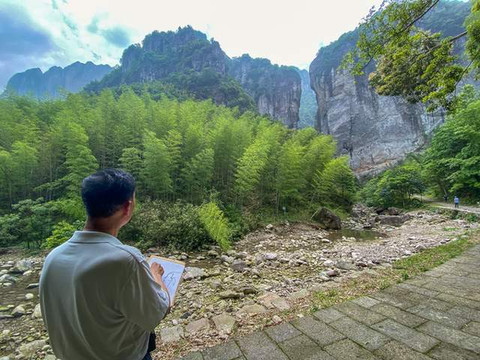 回程的路上,我们遇到一位画家在用画笔记录显胜门的雄险,一笔一划耐心细致,不像我们来也匆匆去也匆匆,真希望以后有时间能在雁荡山住上几天,慢慢体会雁荡山的秀丽多姿。