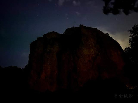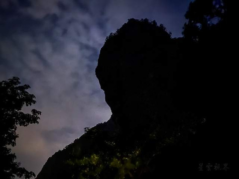 导游骄傲地讲起来,神奇各异的山峰,火山喷发后形成的岩层,洞穴中的庙宇,我们雁荡山是全国独一无二的。就是神奇,就是梦幻,漆黑的夜晚,手机拍出的照片竟然那么明亮清晰。“牛眠灵峰静,情侣月下恋,牧童偷偷看,婆婆羞转脸。”这就是灵峰夜景留给游客的无限遐想。