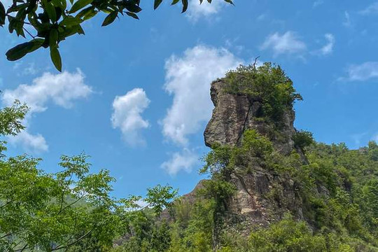 大龙山景区还有许多奇特的石峰,其中以剪刀峰最为突出。剪峰可远眺,又可远眺不同方向,它有五种形态,最初看到的剪峰反而是最独特的,就像恋人接吻,当时问导游,接吻恋人的山峰怎么叫剪峰?向导说原因有二。首先是因为当时徐霞客的感觉就像剪刀,所以这座山叫做剪刀峰。