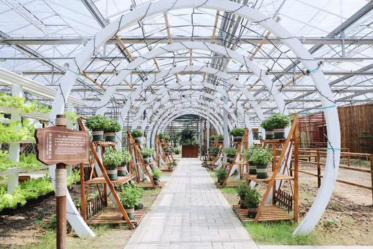坐落于农场核心区域的有机科普馆是集科普、示范、互动、休闲于一体的有机农场迷你版。这里集结了许多农业领域里边的新玩意儿,有大片绿植打造的墙面,各种未曾谋面的新奇蔬果,离开了传统的泥土栽培也能生长的植物等等,也有让人惊叹的农业科技,比如互联网中空技术,立体栽培技术等等。在这里不仅能满足视觉上的震撼,还能参与田园课堂的互动体验课程,非常的生动有趣。