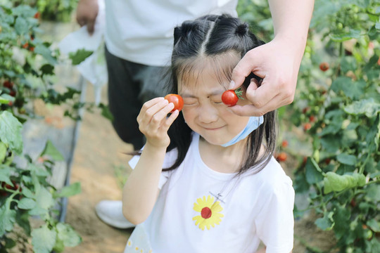 女儿和爸爸一起采摘,两个人有了比拼也就更有兴致。互相不示弱,女儿还一边采一边偷吃,我也不会担心她会拉肚子,放在口中酸酸甜甜的好解渴,比任何饮料都管用。