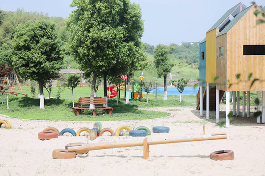 射箭场、鼹鼠洞、蹦蹦床、高空滑索、沙滩广场、原木跷跷板、七彩滑滑梯,可以荡到天上和白云作伴的秋千,超多游乐项目,让家长和孩子一同踏入这个无尽欢乐的童真世界。
