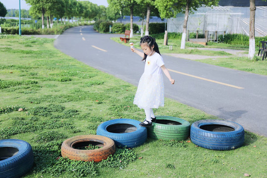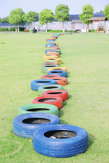 一号农场还有一片超大的绿色草坪,一眼望去,满眼生机勃勃的景象。小朋友可以骑上超酷炫的卡丁车体验一下驰骋的快感,也可以五颜六色的轮胎上跳房子,一排跳下来也是颇费体力的。如果有宠物也可以带过来,一起玩玩闹闹太有意思了。