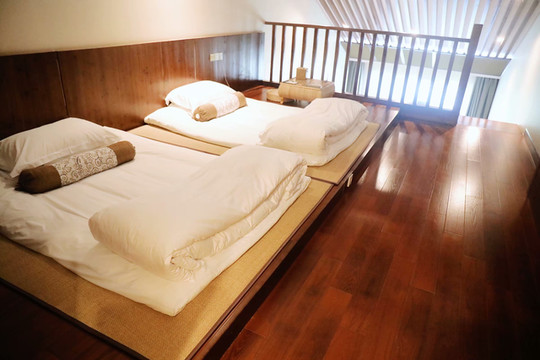 二楼为主卧休息区,日式榻榻米整齐排开,床品干净整洁,一夜好眠。