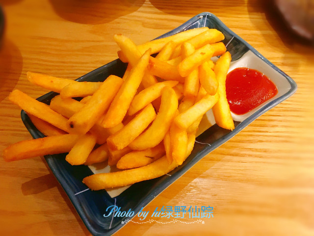 「炸薯条」薯条的火候也掌握得很好,蘸取番茄酱。