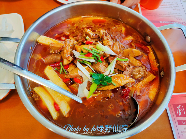 「筋头巴脑经典锅」锅底小锅88元,有点小,两个人光吃这个吃不饱。锅底是牛肉和筋头巴脑、土豆,重一斤。味道还是蛮不错的。