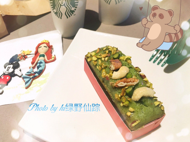 「开心果蛋糕」嫩嫩的绿色很养眼,顶部洒着开心果,底部是抹茶蛋糕,抹茶味道很浓郁。虽然迷你,却很饱人。