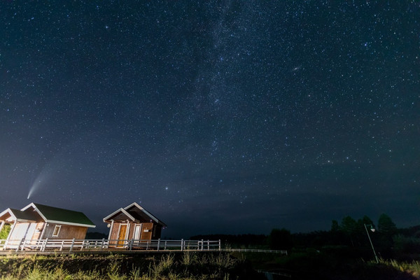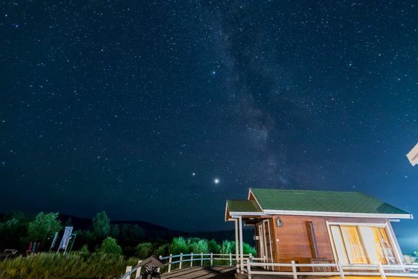 晚上住宿在根河源国家湿地公园的房车营地,这里有一排排的靠湖小别墅,晚上可以直接看到满天繁星。