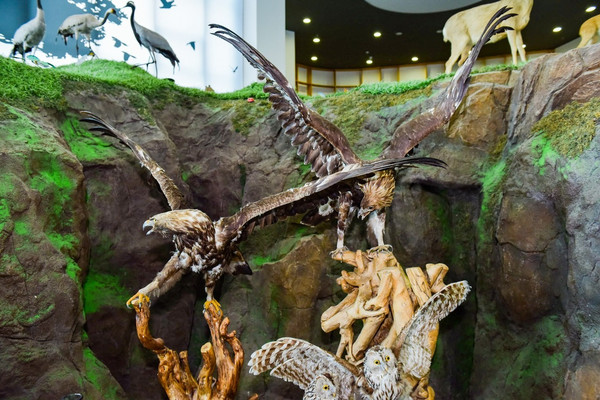 近现代林业采伐生产和林业生活场景的林业文化的生态展厅、有展现大小型原始捕猎工具的展示;