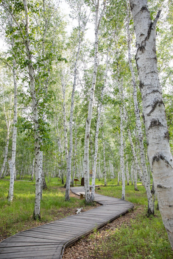 这里的白桦林有着空中栈道、林中木屋等景点,高空栈道围绕着白桦林相依而建,树梢上的漫步,这辈子要走一回。