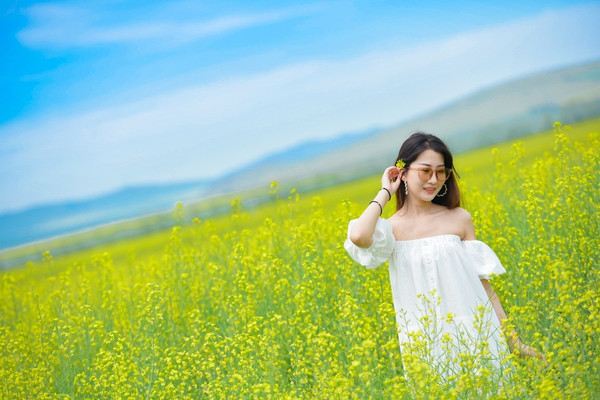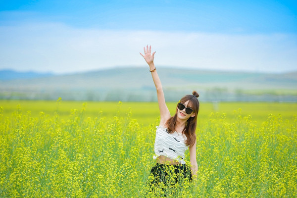 徜徉在花的海洋里,亲近、融入这油菜花的世界,任浮动的思绪、任爱的情愫在花海中飞扬。