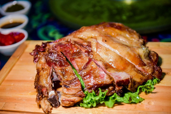 内蒙古大草原最著名的美食当属牛羊肉,烤全羊烤羊排也是必不可少的美食,没有之一,这里的烤羊烤法也不同,师傅们先用独特的手法将羊处理好,烤的时候把一种秘制的酱汁涂在羊身上面,烤好一层吃一层,再烤再吃。