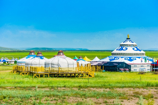 如今我们见到的巴尔虎部落已经不是原始的牧民栖息之地,而是专为游客建立的旅游景区。景区内分布错落有致的蒙古包,宛如镶嵌在草原上的洁白羊群,对于我们这些生活在城市里钢筋水泥建筑的人,简直是一道独具特色的靓丽风景线。