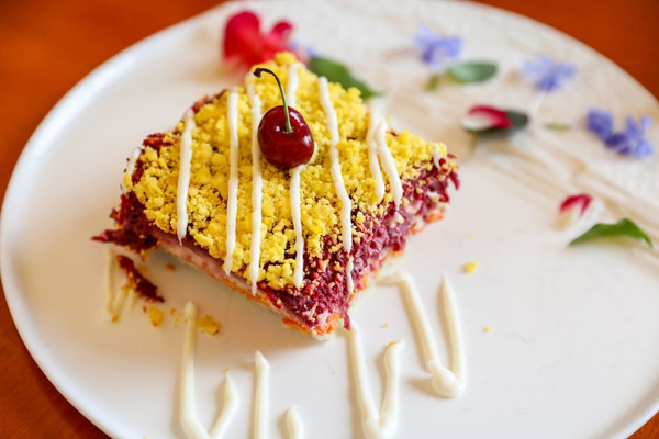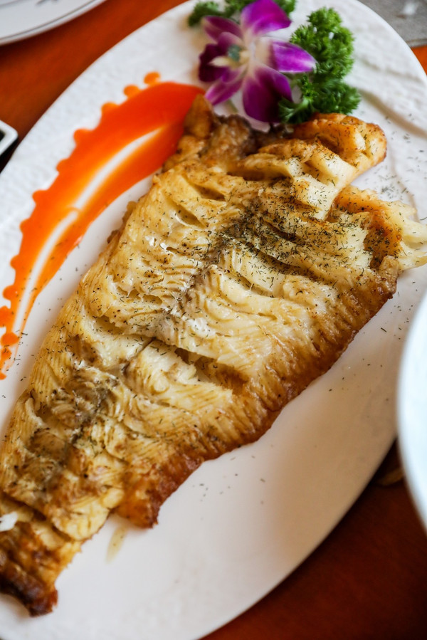 现烤俄罗斯大列巴,新鲜热乎的,从口感上来说类似全麦面包。然而俄罗斯主厨去掉了糖分,却提供了新鲜的奶油和番茄酱做为蘸料,加之又是热乎乎的,让这本来平淡无奇的面包,顿时变得不一样了。