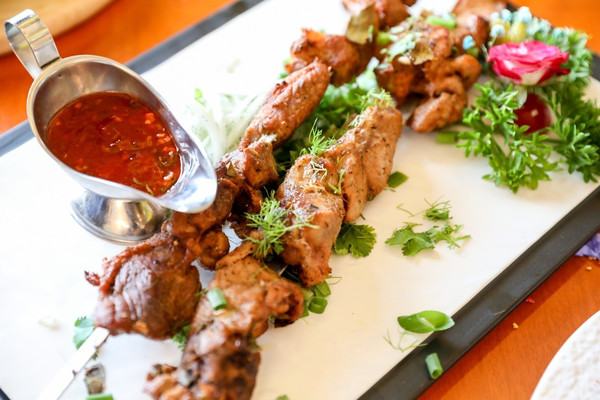 牛肉串、鸡肉串,超级超大,肉汁爆裂,个人认为牛肉串和猪肉串很美味,蘸酱是番茄酱。 没有肉,没有欢乐,只有吃完才是内蒙古真正的象征,哈哈哈!