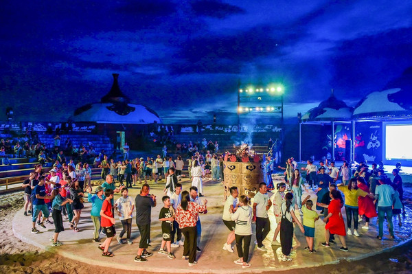 一到晚上,一场盛大的 “巴尔虎之夜” 民俗民风歌舞演绎篝火晚会正式开始,以收取门票形式,客人自愿参加。购票的游客会到这里一起围着篝火载歌载舞,在这里无论你来自哪里,都会变成朋友,拉起手唱起歌,共同欢呼美好的草原生活。