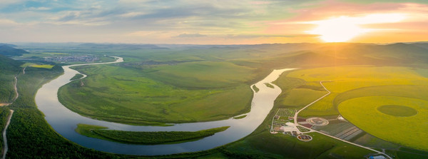 蜿蜒的根河水就像一条银玉带,穿过森林,流过浅滩。 像宝石一样的点缀的牛轭湖被埋在绿色的山谷中。 河流,湖泊和植被的颜色随季节而变化。慷慨地使用湿地,将她的美丽和优雅赋予了额尔古纳 。