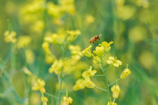 “油菜花开满地黄,丛间蝶舞蜜蜂忙;清风吹拂金波涌,飘溢醉人浓郁香”。