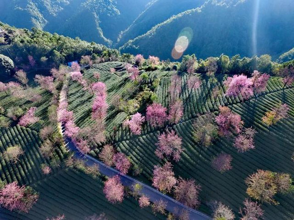 被云雾笼罩的新都桥如一幅美丽的画卷