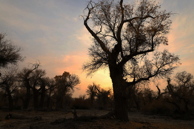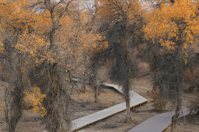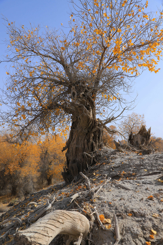 胡杨,不愧为一个坚强的树种,活着一千年不死,死后一千年不倒,倒后一千年不朽
