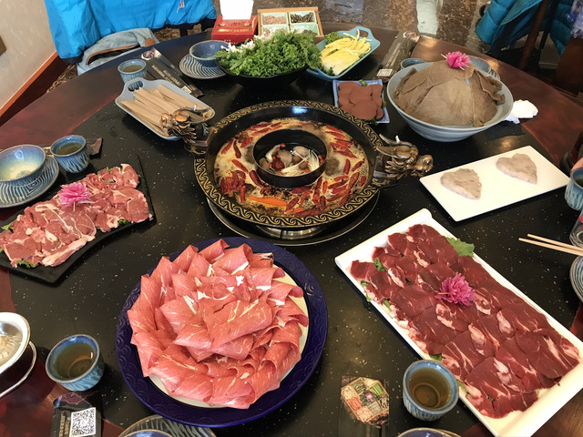 拍摄结束回酒店休息,连着几天,中午都是以干粮打发的,难得今天有时间,中午打算好好吃一顿,在领队的介绍下来到镇上的一家火锅店,看着小小的门面,其实里面有大乾坤,装修大气,牛、羊肉更是一流