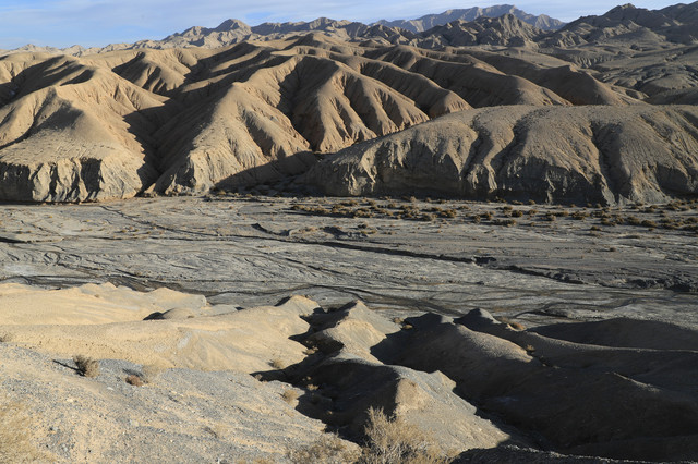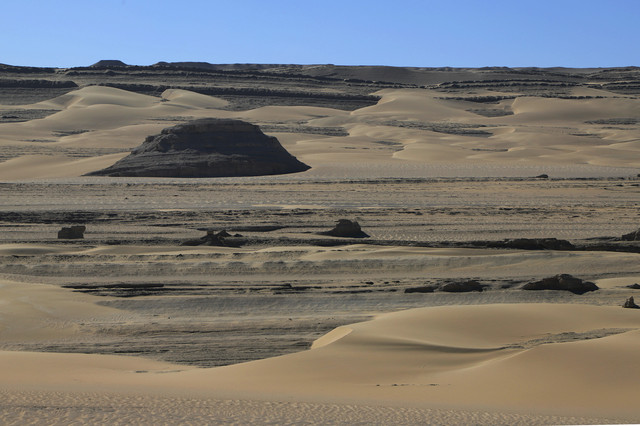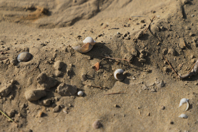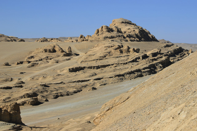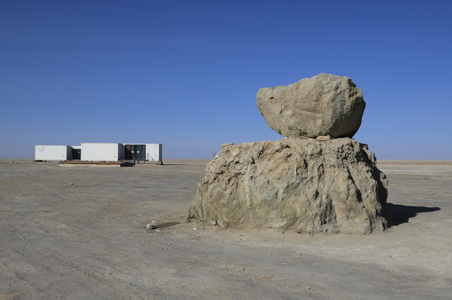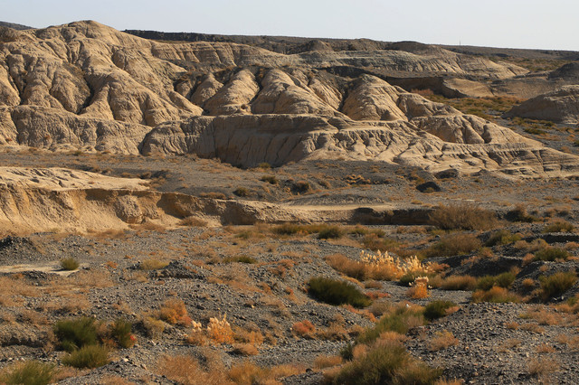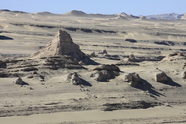 沙漠表面散落着一些螺壳,表明几亿年前这里曾经是一片汪洋大海