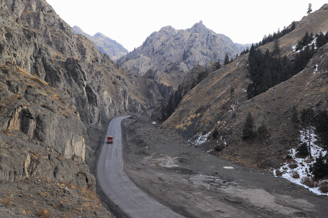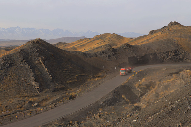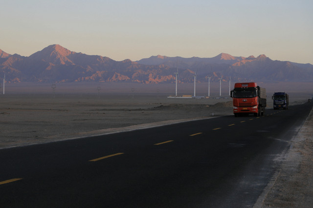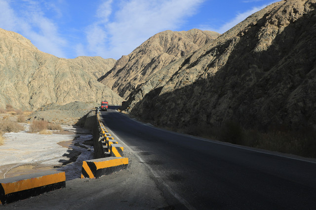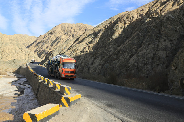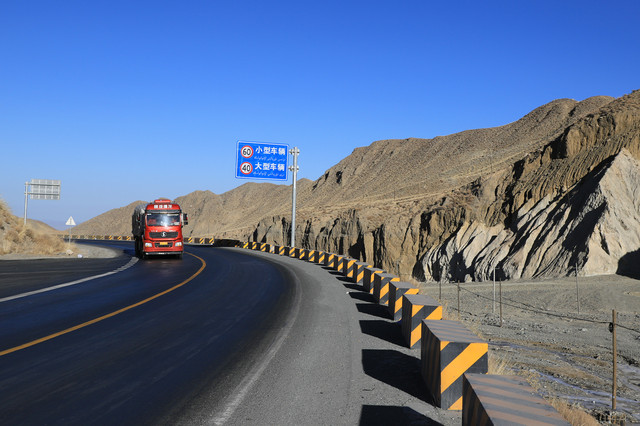 这条路上来来往往最多的就是这种大货车,靠着公路的大动脉,南北疆的货物及各种资源能够流动起来