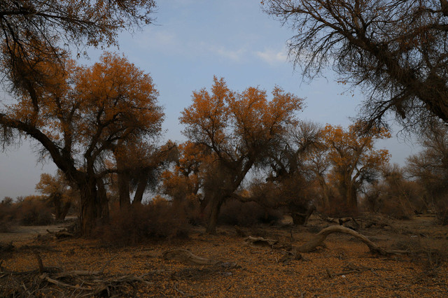 路遇一片野胡杨林,惊艳~