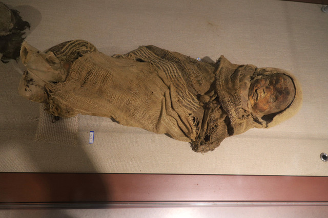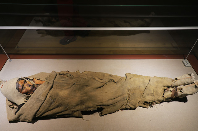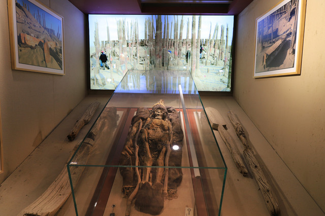 因时间比较紧,所以一进入博物馆,就奔着镇馆之宝而去。楼兰博物馆的镇馆之宝有从楼兰遗址和小河墓地出土的成人和儿童的干尸。