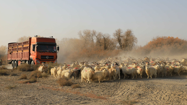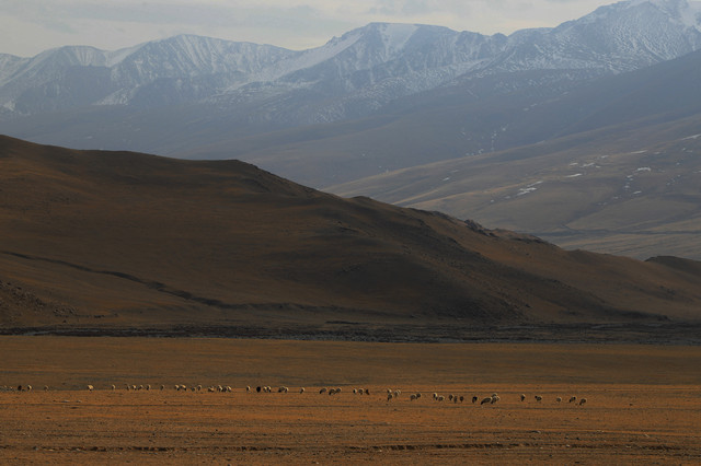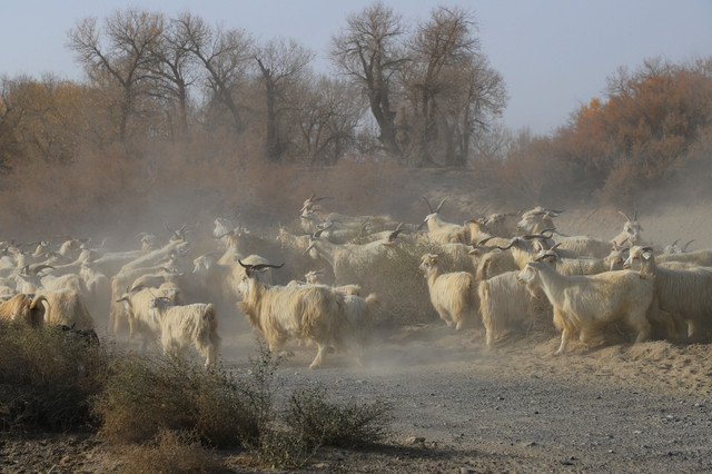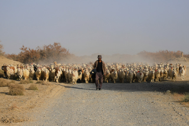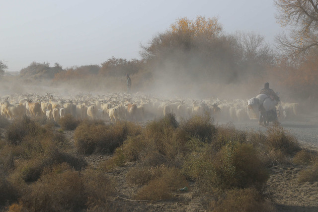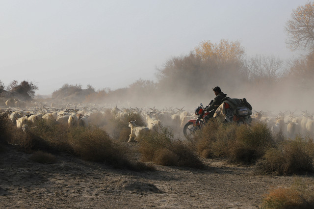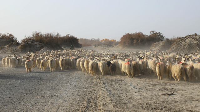 很幸运,竟然在沙漠里偶遇了羊群的大迁徙,羊群的主人驮着被褥等生活用品,将羊群赶往冬季牧场,浩浩荡荡的羊群掀起阵阵尘土,场面蔚为壮观