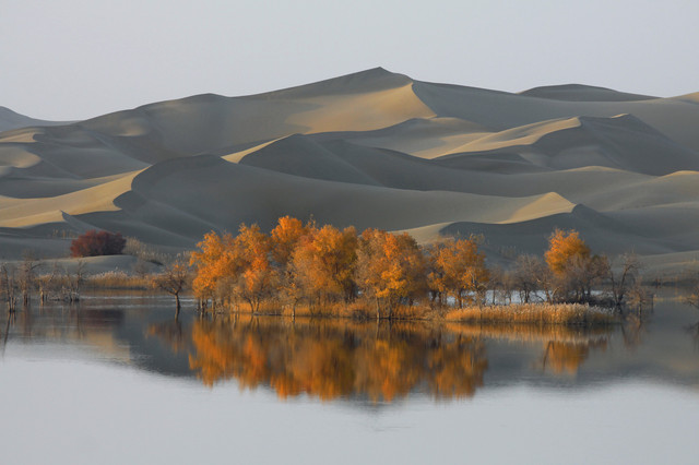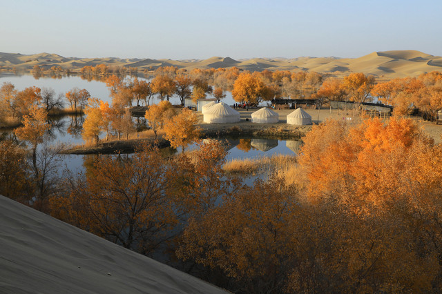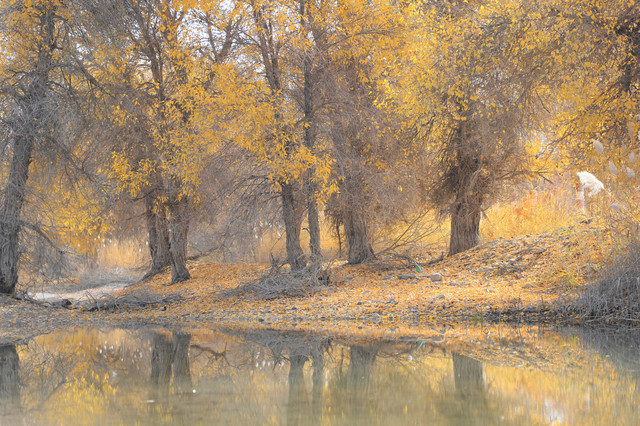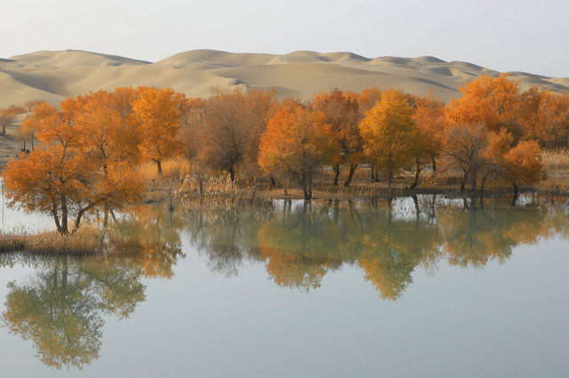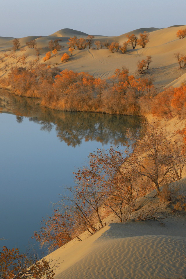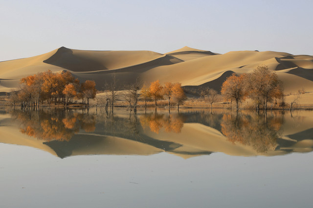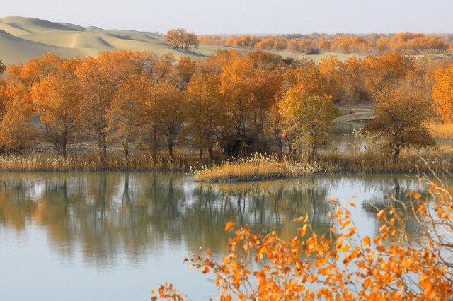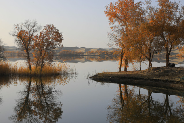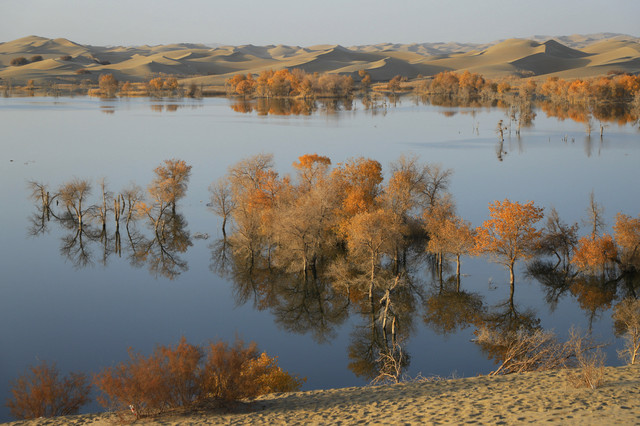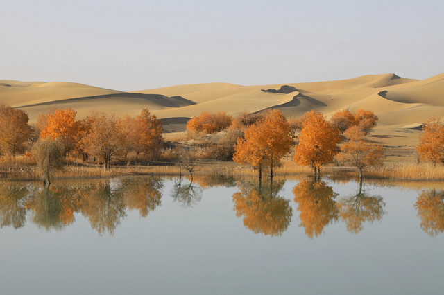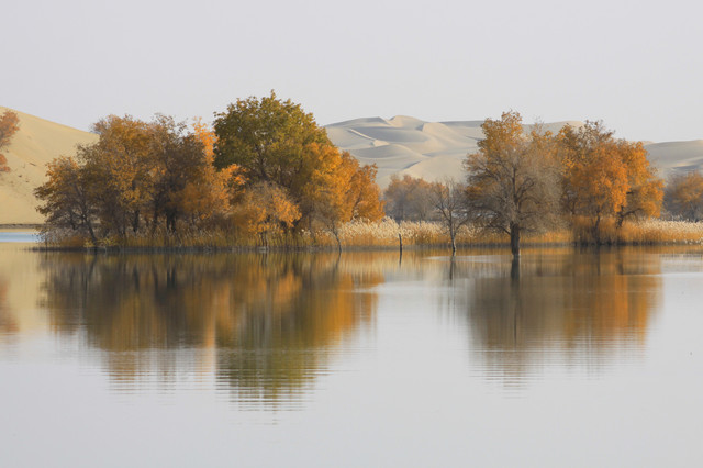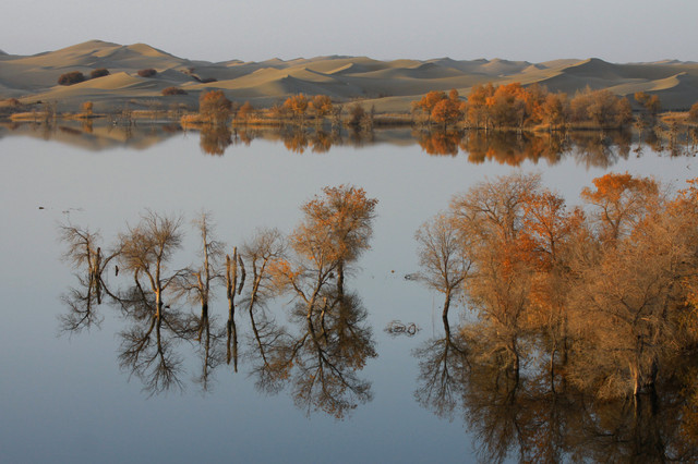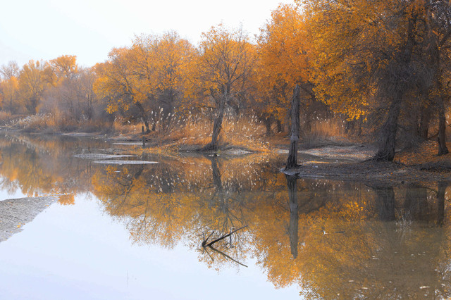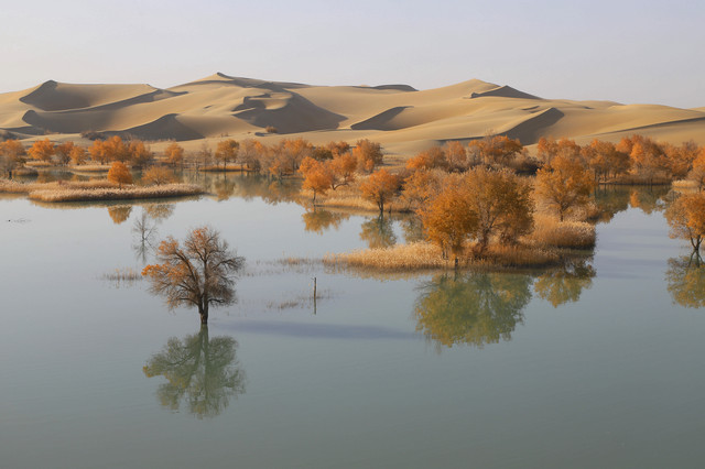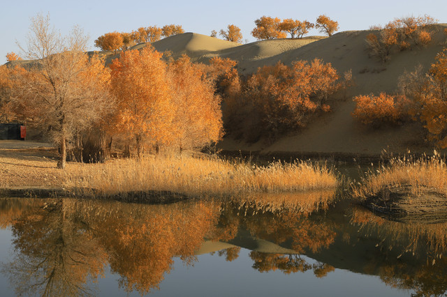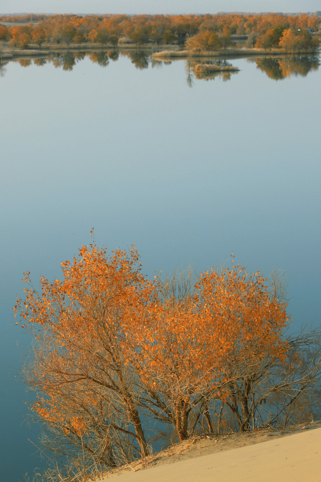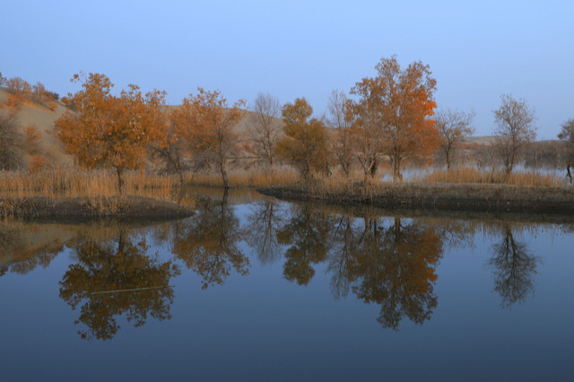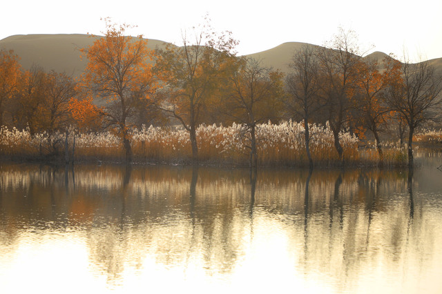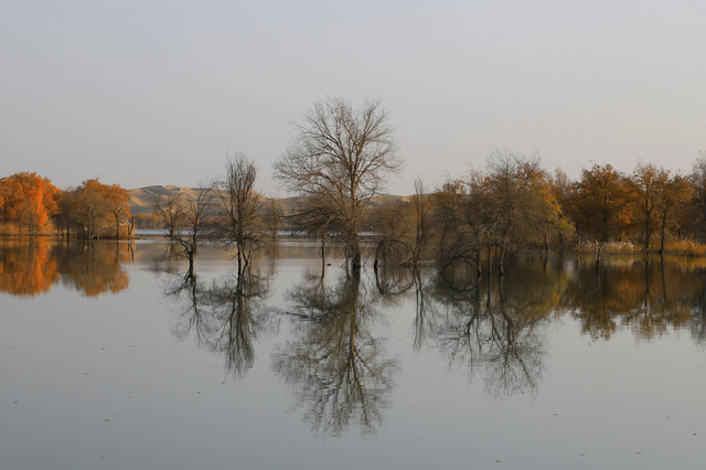 进入草湖,随处可以看到“落霞与孤鹜齐飞,秋水共长天一色”的景致,它是大漠胡杨文化的经典