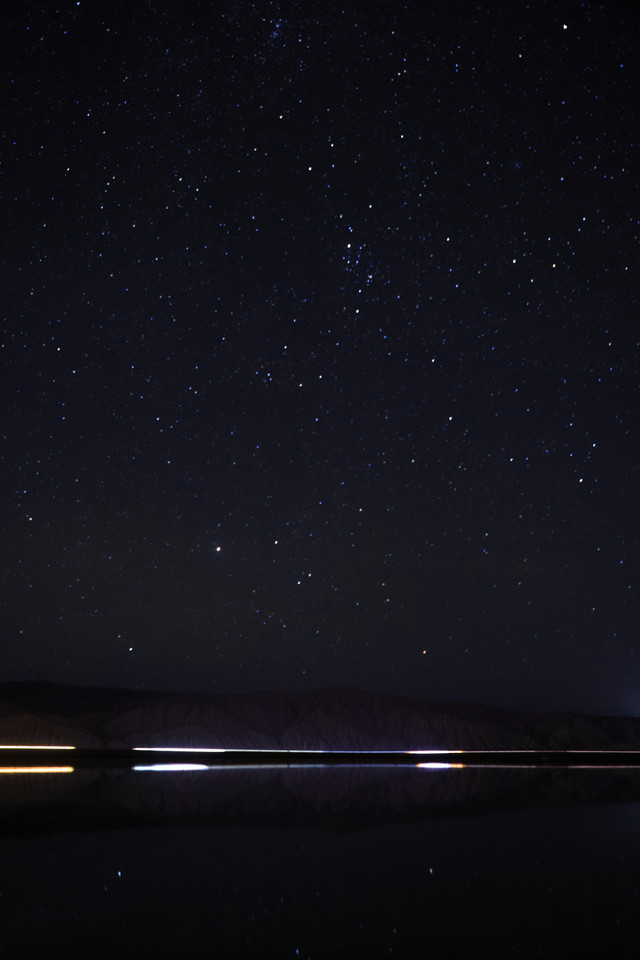 夜幕降临,天气一下子变得很冷,我们躲在车里等待拍摄星空。