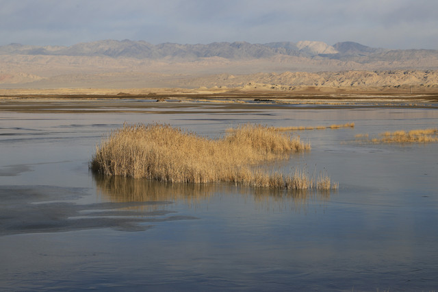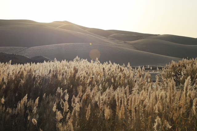 康拉克湖位于塔克拉玛干沙漠、库木塔格沙漠和罗布泊之间,康拉克维语是“沼泽之地”的意思,区域内有500多平方公里的湿地,共有11个大大小小的湖泊组成,远处则是沙山,周围红柳、芦苇等植物茂密