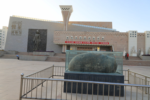 楼兰博物馆位于若羌县城内,2011年5月3日正式开馆。博物馆整座建筑具有浓郁的古楼兰建筑特色,其中一侧的建筑模仿米兰佛塔建造,另一侧则是现代建筑样式。现代建筑面墙上浮雕着一个按古楼兰女尸复原的貌若天仙的美女形象,在仿造的米兰佛塔的建筑下,则有三尊佛陀雕像