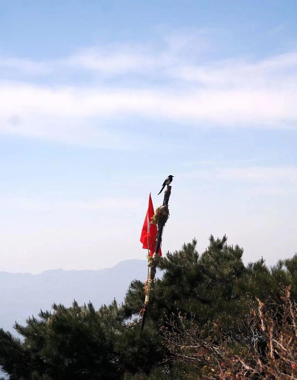 登封台周围树木繁盛,偶有小鸟停在枝头,观望下一步的落脚点,古代皇帝祭天祭地的场所,视野自是极为开阔。