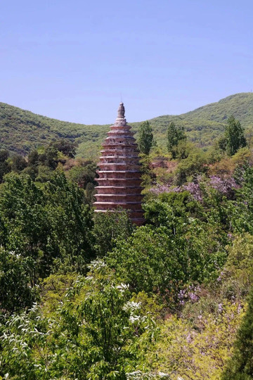 寺中最有名的建筑是法王寺塔,这座古塔建于盛唐,是唐代乃至中国历史上最优美的古塔,塔身上下收小,整体呈梭形,檐端连成柔和的弧线,体现了唐代艺术家高度的审美能力。