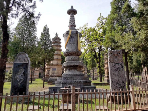 少林寺另一处圣地是塔林,位于寺院西300米处,是少林寺历代高僧安息的墓地。这里共有从唐代到现代的248座佛塔,是中国现存规模最大、数量最多、建塔时间最长的一座塔林,被誉为“古塔艺术博物馆”。