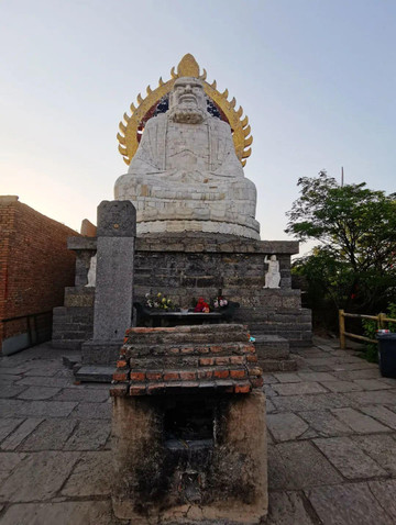 五乳峰顶有一座高大的汉白玉达摩像,是1995年由数百名佛教徒捐资修建的。