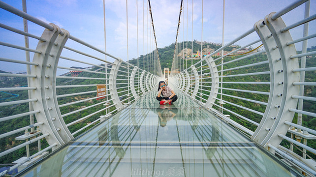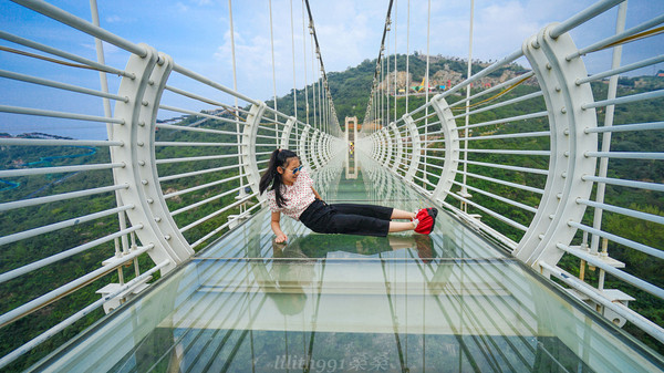玻璃桥则是老少皆宜,这里的玻璃桥有一段可以踩出声音,小朋友冲上去就是各种跺脚。在桥上,妹纸戏精附身,趴地上叫我救她,当然我是不会救的。