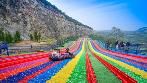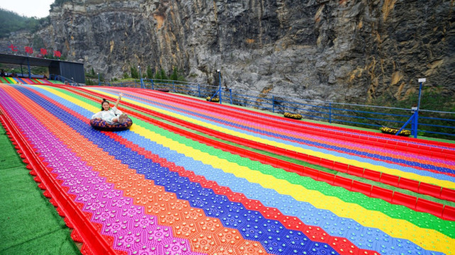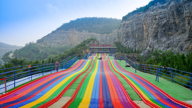 年龄小的孩子来,可以玩七彩旱滑,坡度不算很陡。