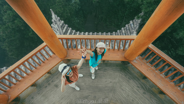 果然是孩子的体力好啊,爬山蹭蹭蹭人影就不见了,到了燕子阁顶部,才抓住拍到照片。