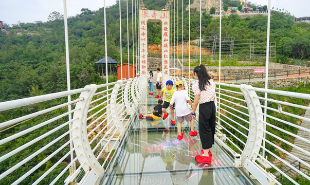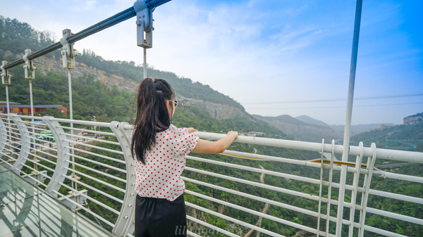 我家妹纸终于勇敢地蹦蹦跳跳走了个来回,中间晃晃悠悠,还真挺考验胆量。胆子大的话,可以看看风景的。