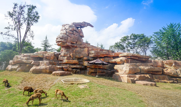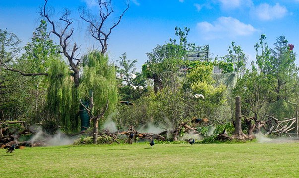翡翠海区域,有网红萌宠羊驼、水豚、袋鼠,还有缤纷艳丽的金刚鹦鹉、红鹮、犀鸟、巨嘴鸟等大型鸟类,充满神秘色彩的海盗船等游乐设施。