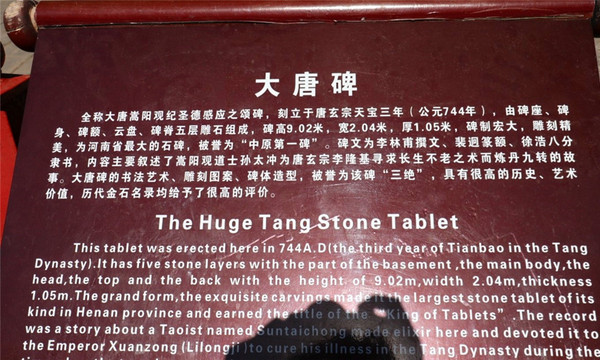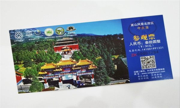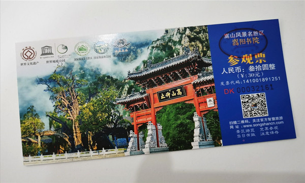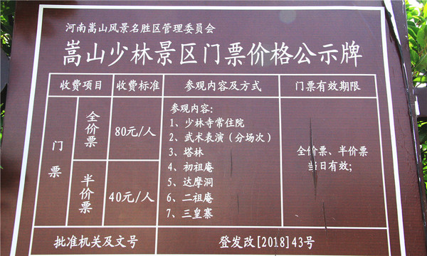 中华五岳之中岳嵩山门票公示牌