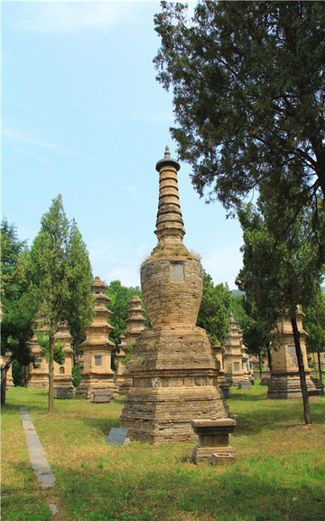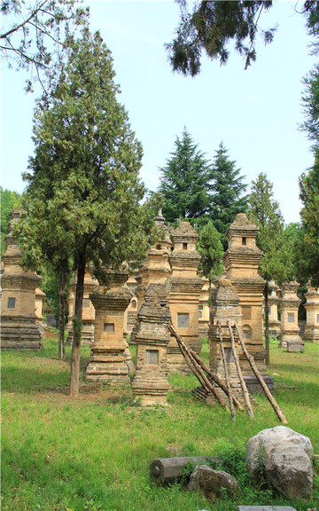 塔林在少林寺西300米的山脚下,是自唐朝以来历代少林寺主持的墓地,1000多年来,已经建成250多座,是中国最大的塔林。