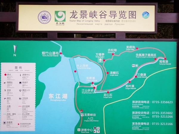 龙景峡谷主要是2个环线——贴近东江湖的小环线(有浮桥)和一路沿着瀑布上行,到了山顶再下山的大环线。简单粗暴一点:看景区地图,最核心景观就是龙吟瀑、三叠瀑、鸳鸯瀑。有岔路都是先往右走,到了山顶再往万福亭方向下山。总体上就是一个不走回头路的环线。