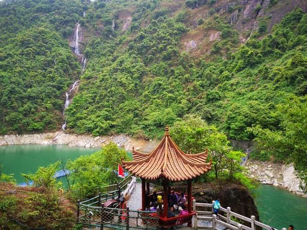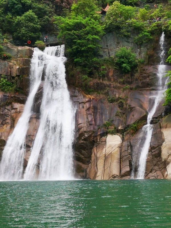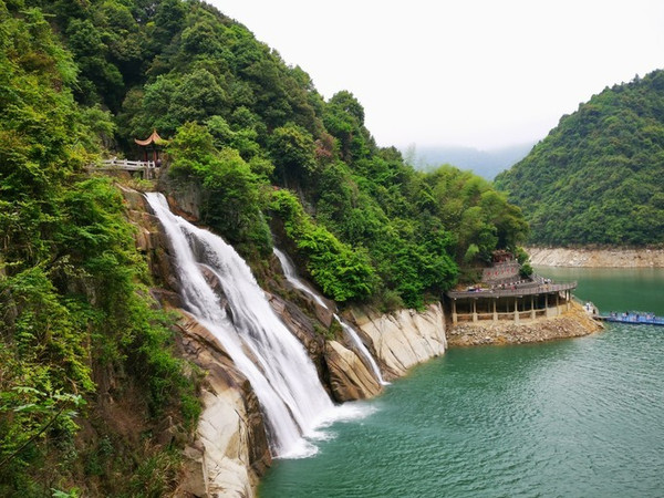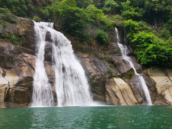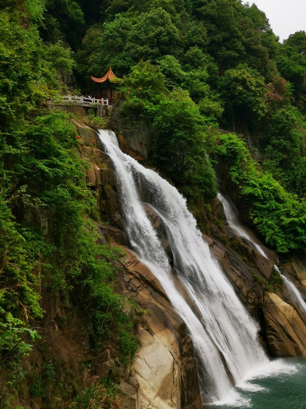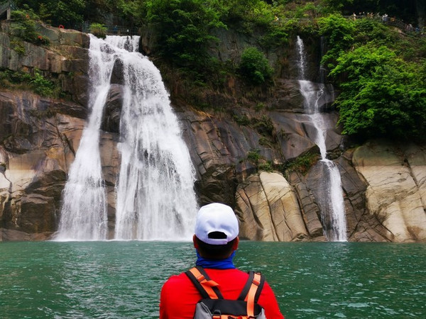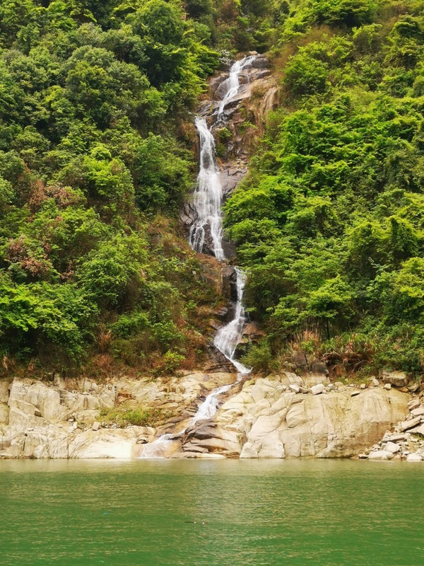 只要到了东江湖码头,立刻就会看到一帘长长如白练般的瀑布,自云雾缭绕的高山之巅飘飘然然,流畅欢快奔向山脚下如翡的湖面。这,其实只是龙景峡谷十八瀑布中的一道~水口垄瀑布。